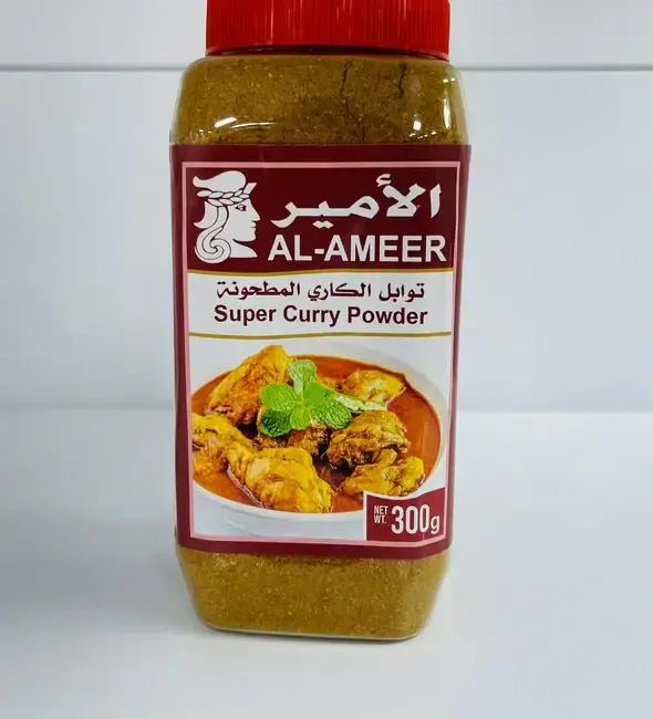Al Ameer Super Curry Powder 300g is a flavorful blend of aromatic spices that adds a rich, warm, and authentic taste to your curries and everyday dishes. Perfect for creating traditional South Asian and Middle Eastern flavors with ease.