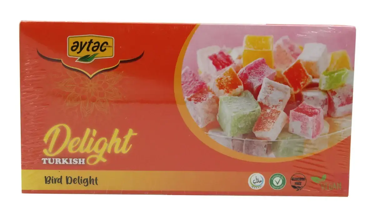 Aytac Turkish Delight Bowl Mix Fruits, chewy cubes infused with assorted fruit flavours, presented in a convenient bowl for easy snacking or sharing.