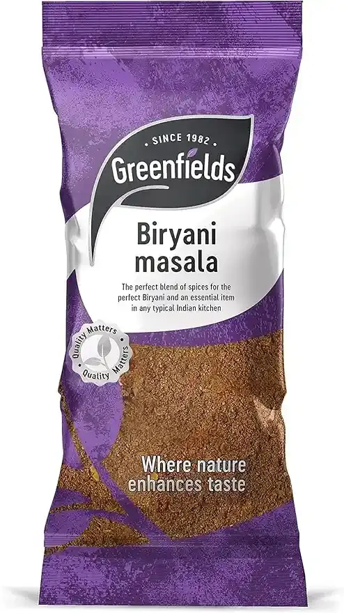 Greenfields Biryani Masala 75 Gram used to prepare all types of biryani, elevating the taste of rice, chicken, or meat to a new level of deliciousness..