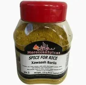 Moroccan Spices Spice for Rice 225g ، is a complete blend of traditional herbs and spices that add a rich and aromatic flavor to rice dishes. The mix includes saffron, cinnamon, black pepper, and other spices that balance sweet, spicy, and pungent tastes, giving rice a distinctive and delicious character