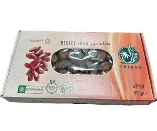 Thimar Deglet Nour Tunisian Dates 900g  ، feature high quality and large fruits, rich in natural minerals and fiber, making them an excellent dietary choice to boost health and energy